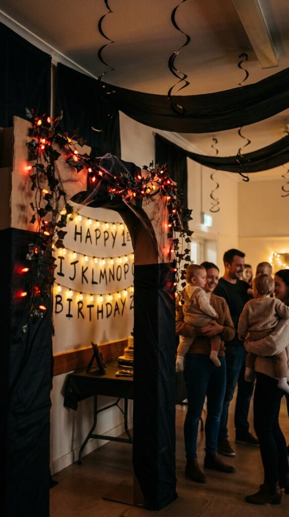 A balloon arch using red, black, and white balloons instantly creates that eerie yet festive atmosphere everyone loves.