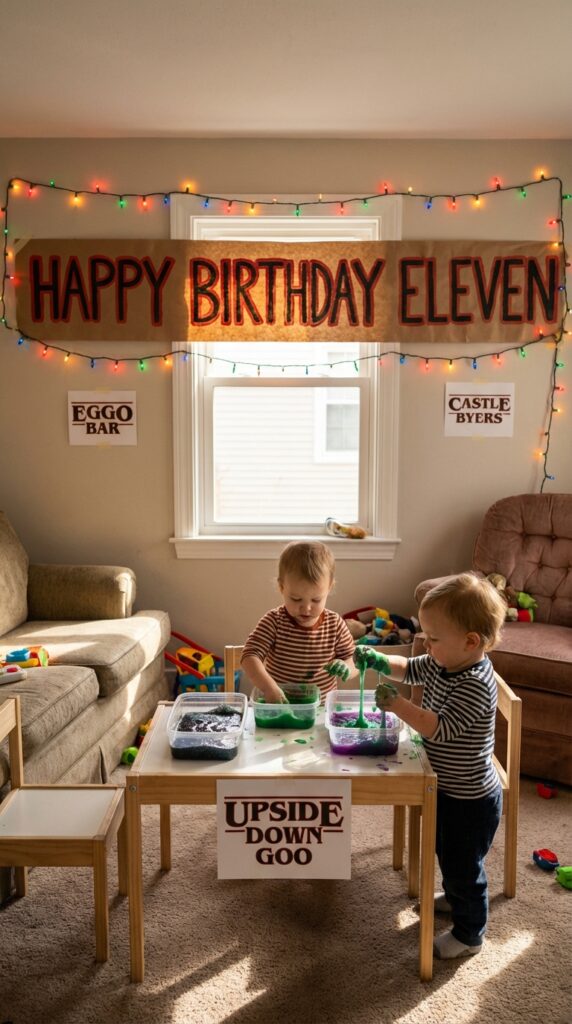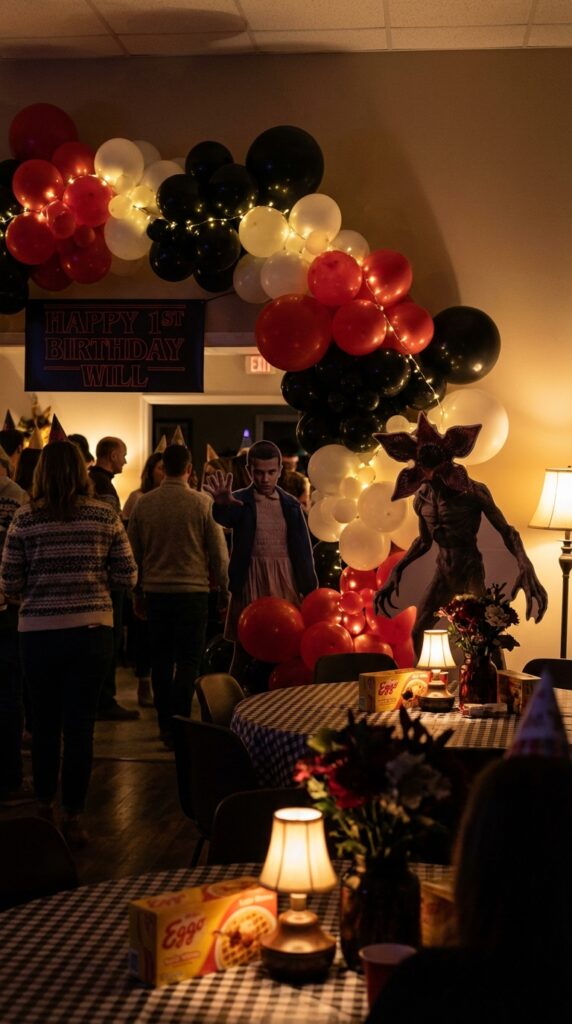 For a girl-focused twist, lean into Eleven-inspired decor themes like telekinesis props and her iconic pink dress to give the party a personal, character-driven feel.
