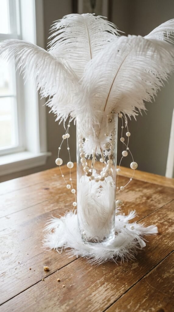 Feather and Pearl Centerpiece Ideas