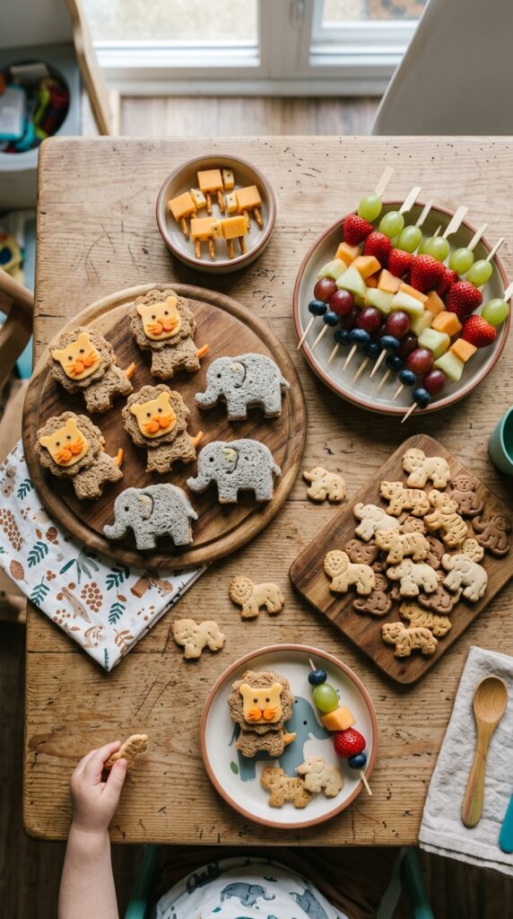 After the games wrap up, it’s time to feed those little explorers—and food is honestly where you can have the most fun with a safari theme.