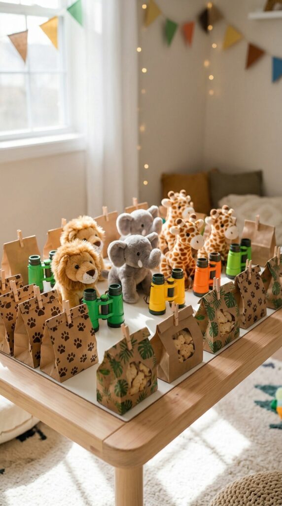 Pair them with plush animal sets featuring lions, elephants, and giraffes, and you’ve got a favor combo that extends the safari magic well beyond the party.