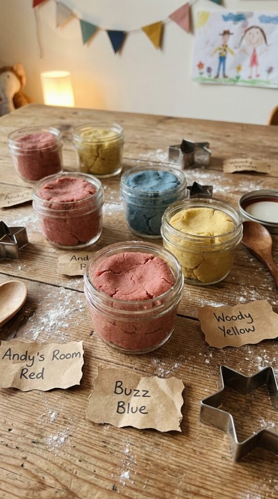 Creating homemade Play-Doh converts your party favors from store-bought basics into personalized treasures that’ll have kids talking for weeks. Mix flour, salt, cream of tartar, oil, and food coloring in Toy Story’s signature colors—bright red for Jessie, yellow for Buzz, and blue for the iconic logo.