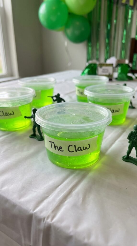 I love pairing green slime with mini army men figures – kids can create their own alien obstacle course at home. Add small plastic containers with alien-themed labels and you’ve got instant entertainment.