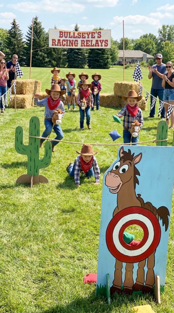 Kids straddle them between their legs while traversing through the course. You can coordinate toy themed races by adding sheriff badge collection stations and bandana-tying challenges along the route. Trust me, they’ll gallop with pure joy while channeling their inner Woody.