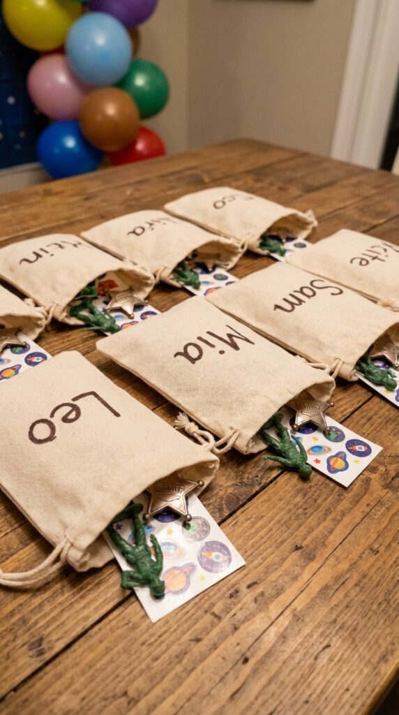 Toss in some green army men figures and space-themed stickers. These thoughtful touches guarantee every guest leaves feeling like they’ve experienced their own epic toy adventure story.