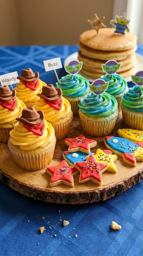 For themed cookie designs, cut sugar cookies into star shapes for sheriff badges and rockets for Buzz. I’ve found that simple royal icing in primary colors works perfectly for toddlers—they’re more interested in the fun shapes than intricate details. Keep decorations bold and recognizable for maximum impact.