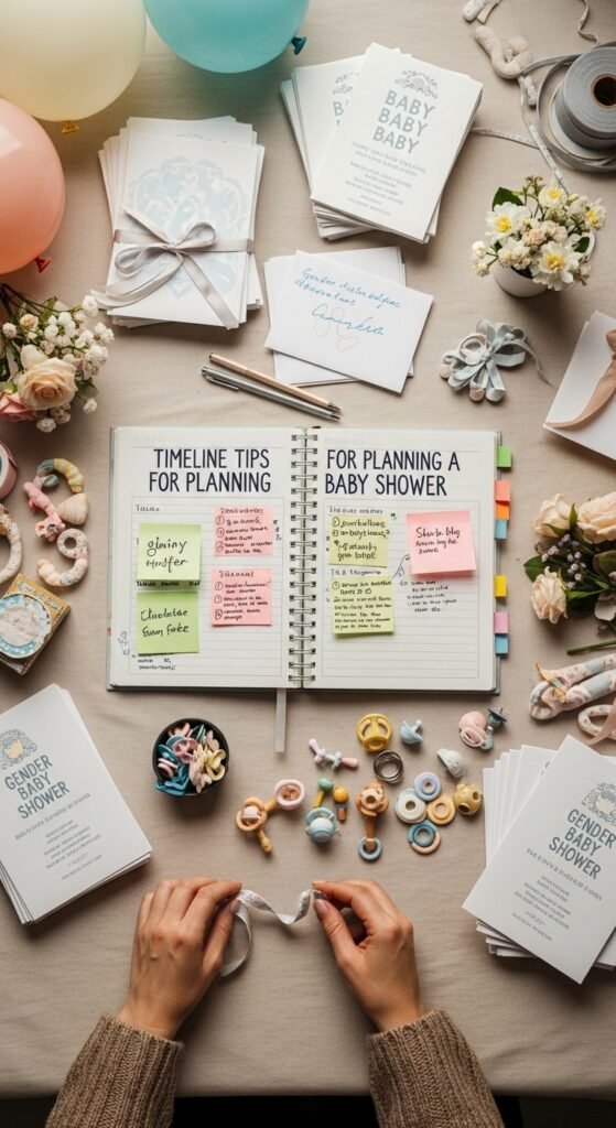Your planning timeline should work backwards from the shower date. Send invitations 4-6 weeks ahead—trust me, coordinating schedules becomes trickier when everyone’s juggling busy lives. Order decorations and favors 3-4 weeks early to avoid shipping delays.