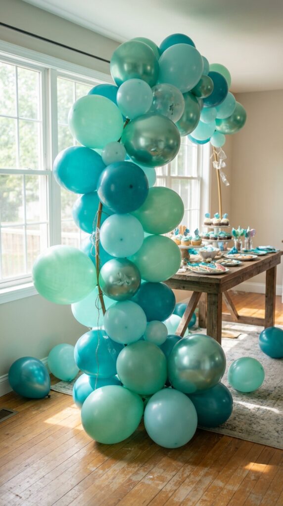 Add a few printed fish or bubble balloons to strengthen your theme. You don’t need a professional installer — most balloon garland kits include everything you’ll need. For an even more immersive look, consider sea creature balloon designs like jellyfish, octopuses, and starfish that mimic real underwater life and add playful dimension to your display.