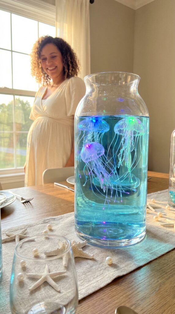 Glowing jellyfish centerpieces are honestly one of my favorite go-to ideas for an under-the-sea party — they’re fanciful, surprisingly easy to make, and they create that magical underwater ambiance that makes guests stop and stare.