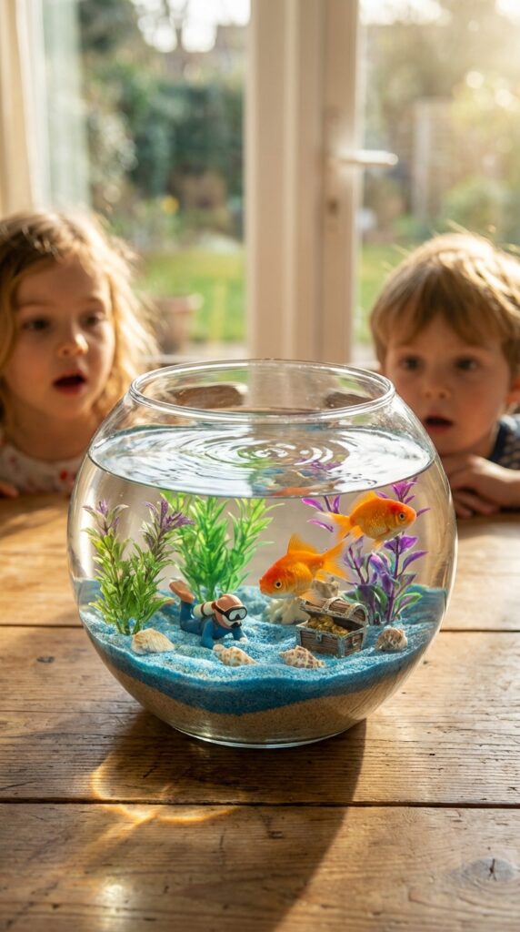 Live fish add genuine wow factor, but they require care before and after the party. Faux setups are stress-free and equally stunning. Either way, layer your bowl with shells, colored gravel, and small figurines. Guests won’t stop staring, and honestly, neither will you.