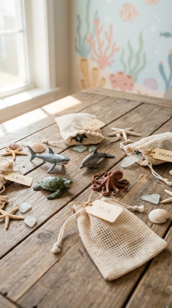 You can even include underwater scene placemats they can color during the party. These kits cost almost nothing to produce but feel incredibly thoughtful. Parents especially appreciate screen-free entertainment they can pull out later. Print them at home, trim the edges neatly, and slip them into themed bags before guests arrive.