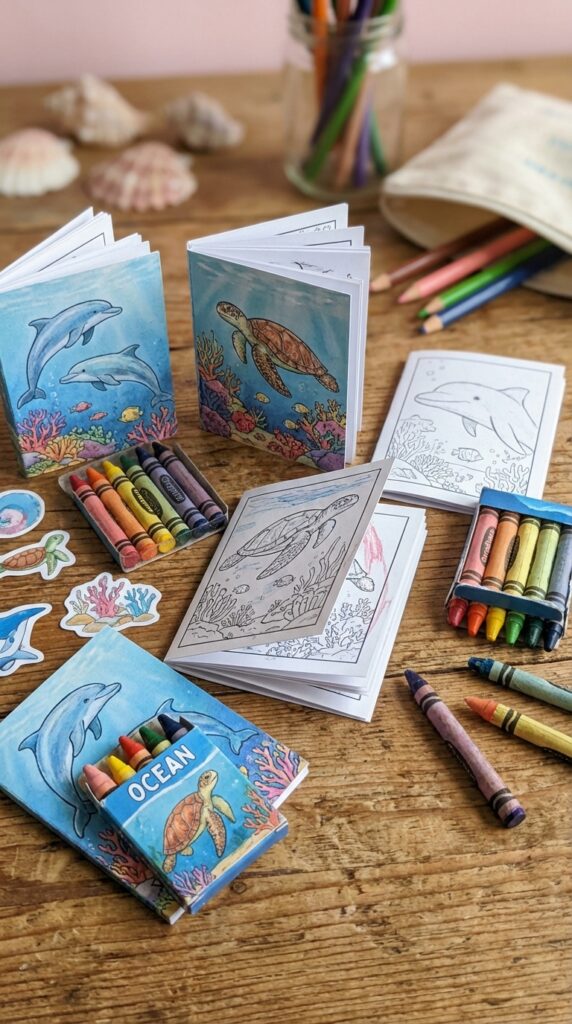 Few party favors hit that sweet spot of practical and fun quite like ocean-themed coloring books paired with a fresh set of crayons. Bundle them with ocean themed stickers, and you’ve got an activity pack kids will actually use.