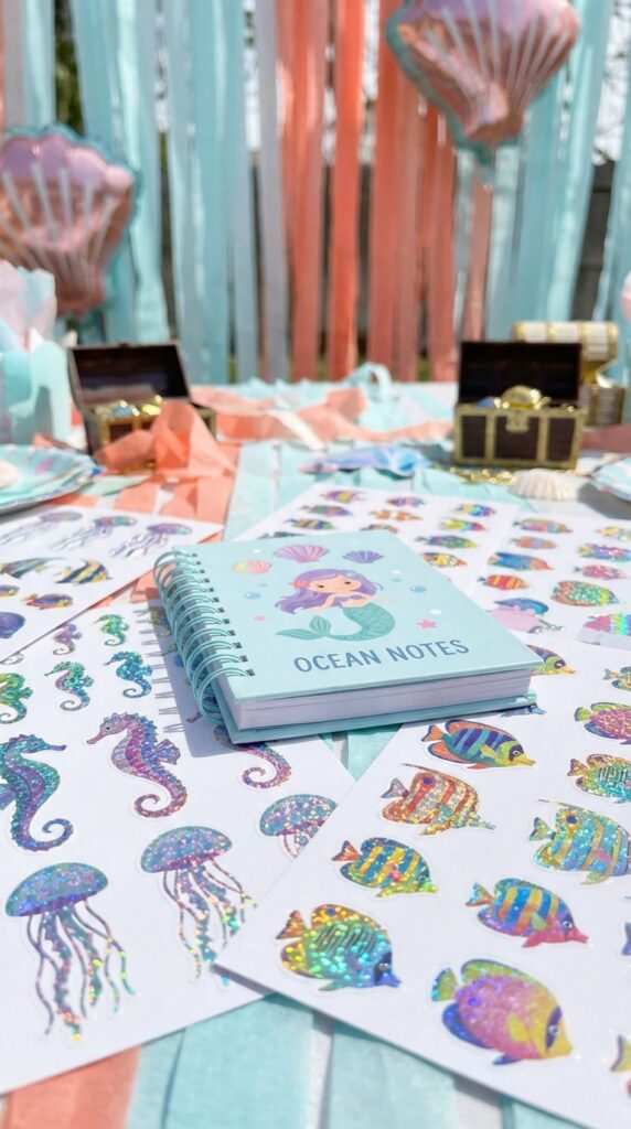 Bundle a pack with a small notebook, and you’ve instantly upgraded the whole favor. Kids actually use these, which means your party lives on every time they crack open that sticker sheet. For even more ocean inspiration, ocean-themed costume ideas can spark creative sticker designs that match what guests are wearing to the party.