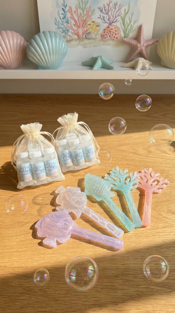 Bubble wands shaped like fish and coral are one of those favor ideas that look almost too cute to actually use — and then every kid at the party is immediately blowing bubbles everywhere.