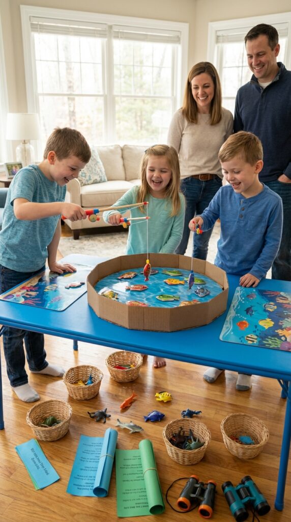 Games can make or break a party, and ocean-themed ones hit different because there’s so much creative territory to investigate. Set up fishing games using magnetic rods and cardboard fish — kids absolutely love competing for the biggest catch. You can even assign point values to different sea creatures for extra excitement.