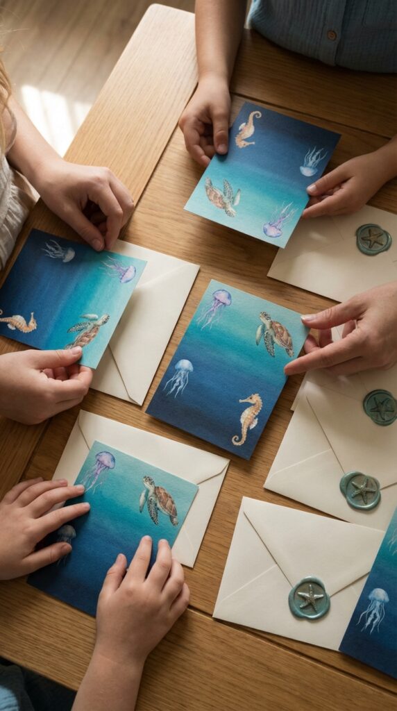 A sea scavenger hunt works brilliantly for mixed age groups. Hide plastic sea animals around the yard or venue, then hand out clue cards with ocean riddles. Older kids decode the clues while younger ones enjoy the treasure hunt energy. Everyone stays engaged, and nobody feels left out. For even more inspiration, DIY underwater activities can be crafted at home to add a personalized touch to the fun.