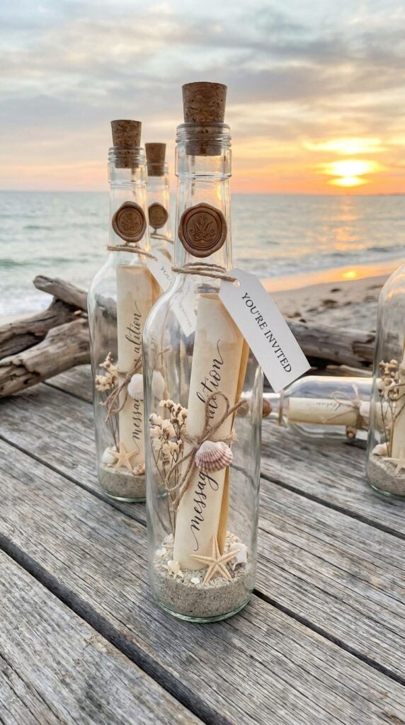When it comes to making a lasting first impression, message in a bottle invitations are genuinely hard to beat. You’ll roll up handwritten scrolls, tuck them inside a corked bottle design, and instantly create something guests will talk about long after the party ends.