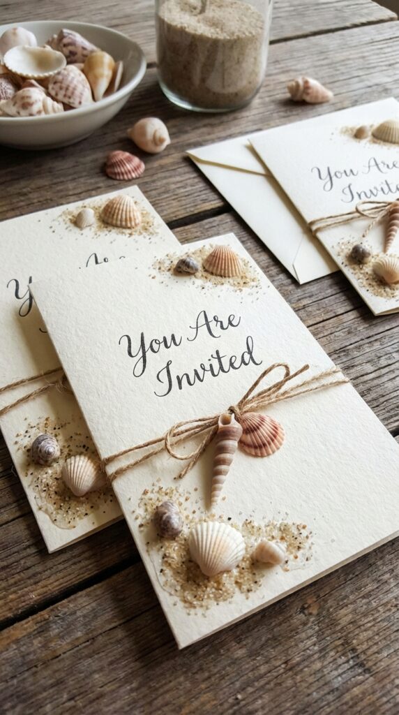 DIY Invitations With Real Seashells and Sand Accents