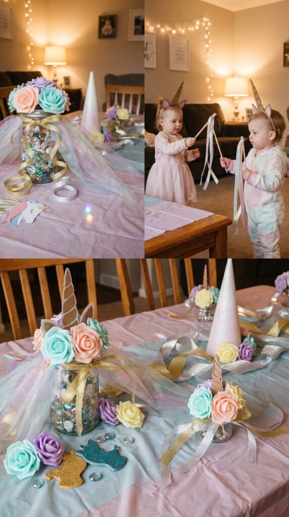 Add unicorn themed entertainment like a horn-painting station where toddlers decorate their own foam unicorn horns. It’s simple, affordable, and surprisingly memorable.
