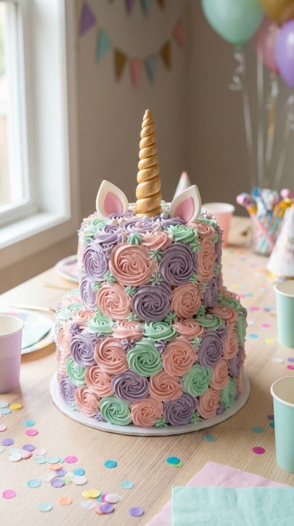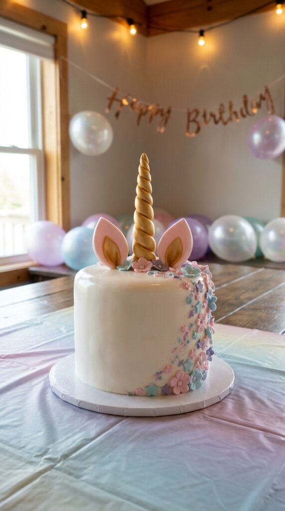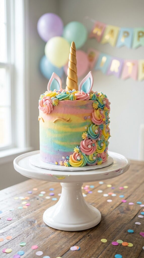 If you’re setting up a full unicorn party, pairing this cake with matching pastel unicorn decorations ties the whole theme together beautifully.