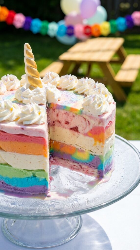 No-Bake Unicorn Ice Cream Cake for Summer Parties