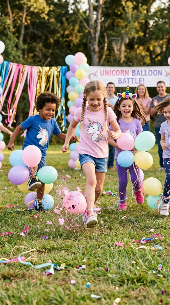 Try a unicorn balloon tying race first to build anticipation — first one tied wins a small prize. Then switch to a team balloon pop relay, where groups race to burst opposing teams’ balloons. Last child standing wins bragging rights and a sparkly unicorn crown. For an extra magical touch, you can even pair the crowns with DIY unicorn decorations that match your overall party theme. Trust me, the chaos is glorious.
