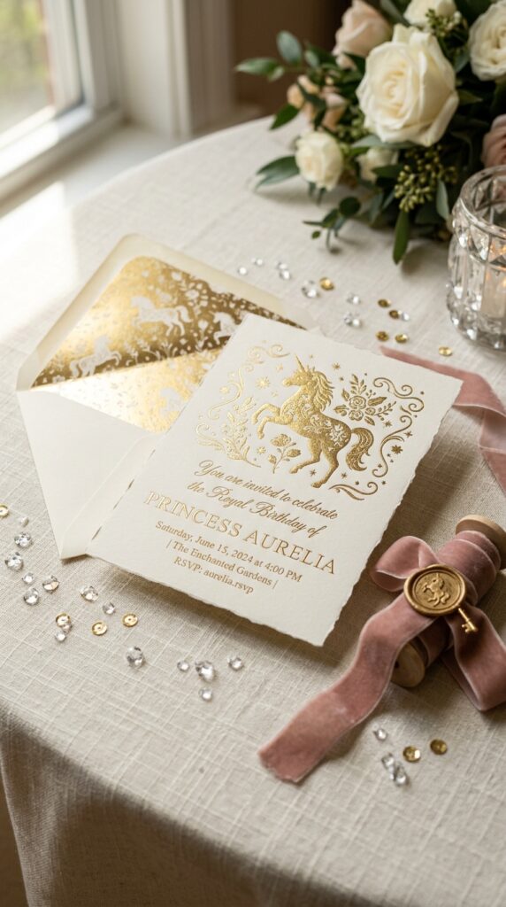Gold Foil Unicorn Invitations for an Elegant Touch