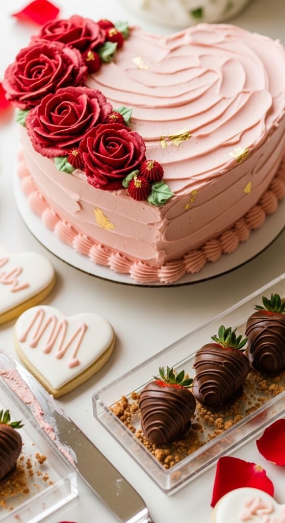 Heart shaped cakes become stunning centerpieces when decorated with pink buttercream roses and gold accents. I’ve found that heart-shaped pound cake works beautifully since it holds its shape perfectly.