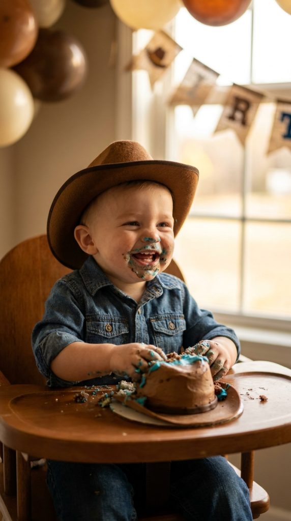 Don’t forget the smash cake! Your little cowboy deserves his own tiny cake to demolish proudly. It’s messy, it’s hilarious, and honestly, it’s everyone’s favorite party moment.