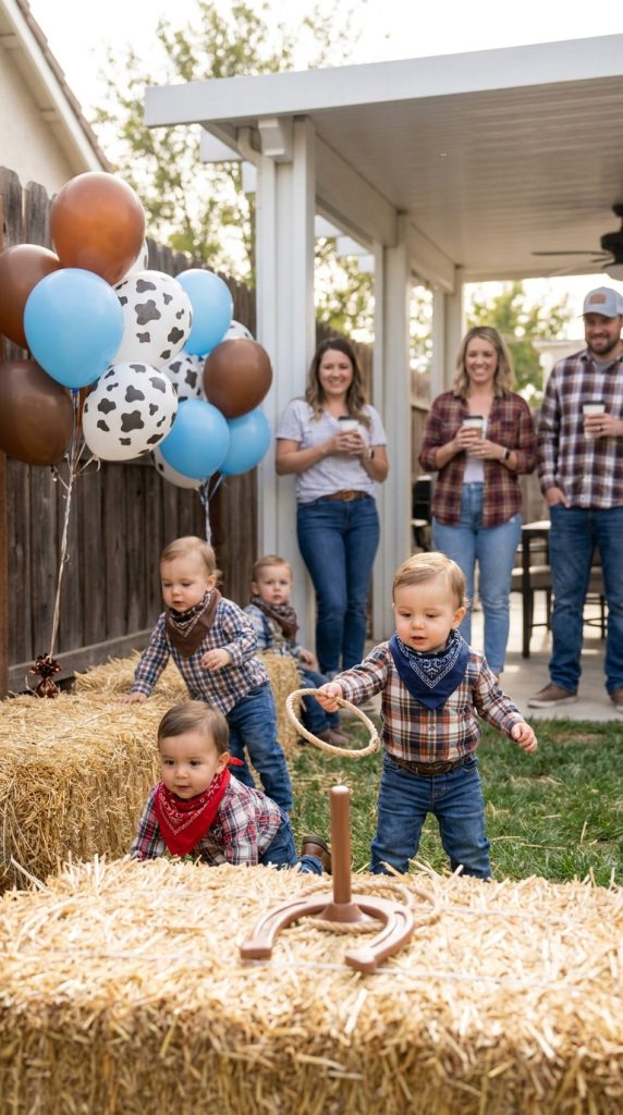 Once your little cowboy has smashed his cake and everyone’s had their fill, it’s time to wrangle the guests into some good old-fashioned fun. Keep games simple — babies don’t need complicated rules, just bright colors and easy wins.