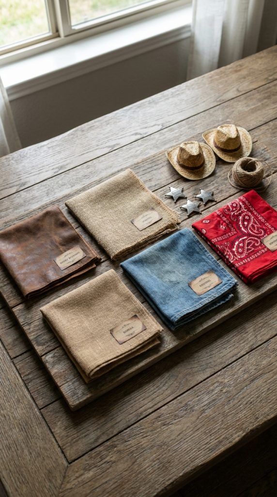 You can also bundle small items like bandanas, sheriff star stickers, and individually wrapped candy into kraft paper bags tied with twine. Simple, affordable, and completely on theme — guests will genuinely appreciate the thoughtful touch.