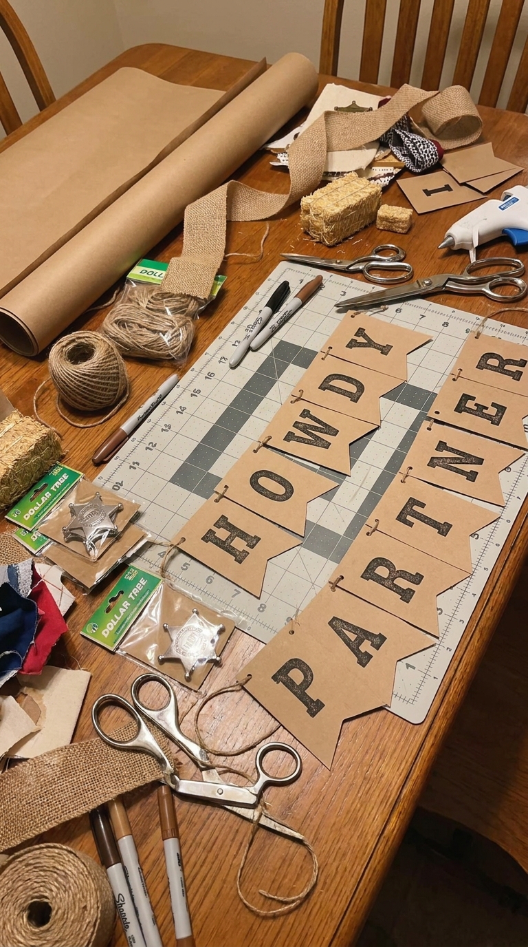 Your party’s decorations are what turn a regular room into a full-blown ranch experience — and that change doesn’t have to cost a fortune. Start with wild west banners strung across doorways or above the dessert table. They instantly set the mood without much effort.
