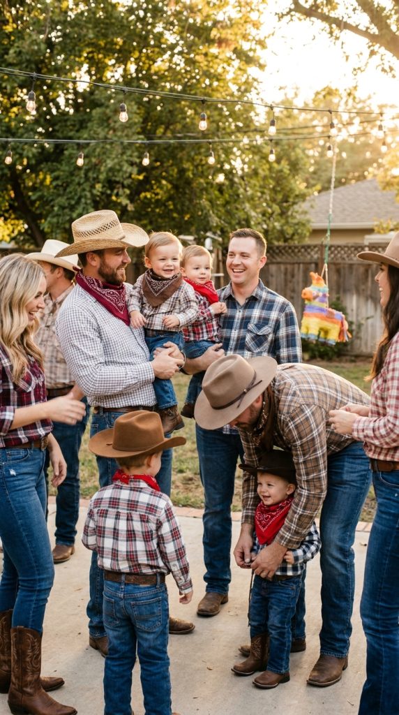 One of the easiest ways to make your little cowboy’s birthday feel like a full-on hoedown is asking guests to dress the part. A simple dress code suggestion goes a long way toward creating that authentic Western atmosphere.