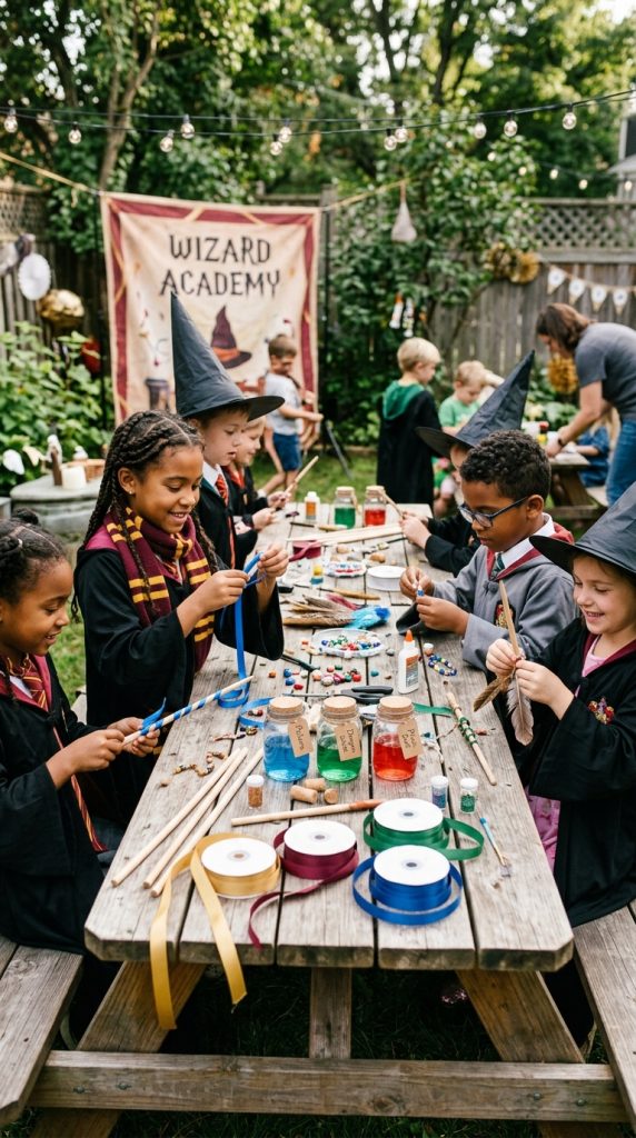 Set up a wand-choosing station where kids select their own magic wands from a velvet-lined box. It feels ceremonial, and they’ll love it.
