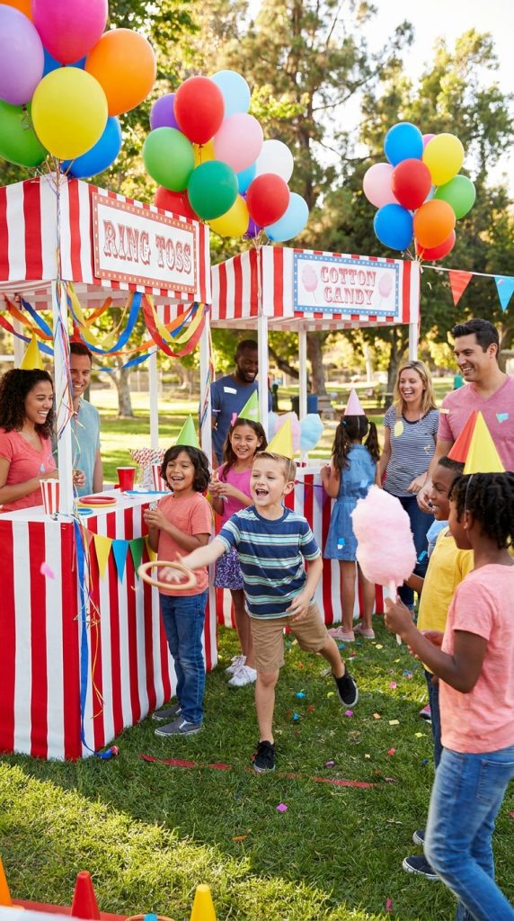 Simple ring-toss games and prize baskets keep the energy high without breaking your budget.