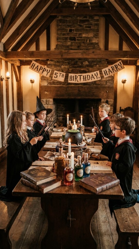 If your child has been dreaming of casting spells and mixing potions, a Wizard Academy party is basically the ultimate 5th birthday experience. Set up stations where kids craft their own magic wands using wooden dowels, ribbons, and gemstone beads. They’ll feel like genuine wizards immediately.