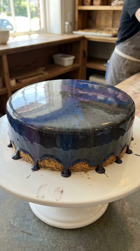 For maximum shimmer effect, chill your cake completely beforehand. The temperature contrast helps the glaze set beautifully against the surface.