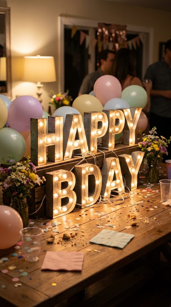 Place them at the center of your table surrounded by flowers or balloons to maximize impact. They work for any age, too. For a Wicked-themed birthday setup, pairing marquee letters with emerald green and pink accents creates a show-stopping magical atmosphere that five-year-olds absolutely love.