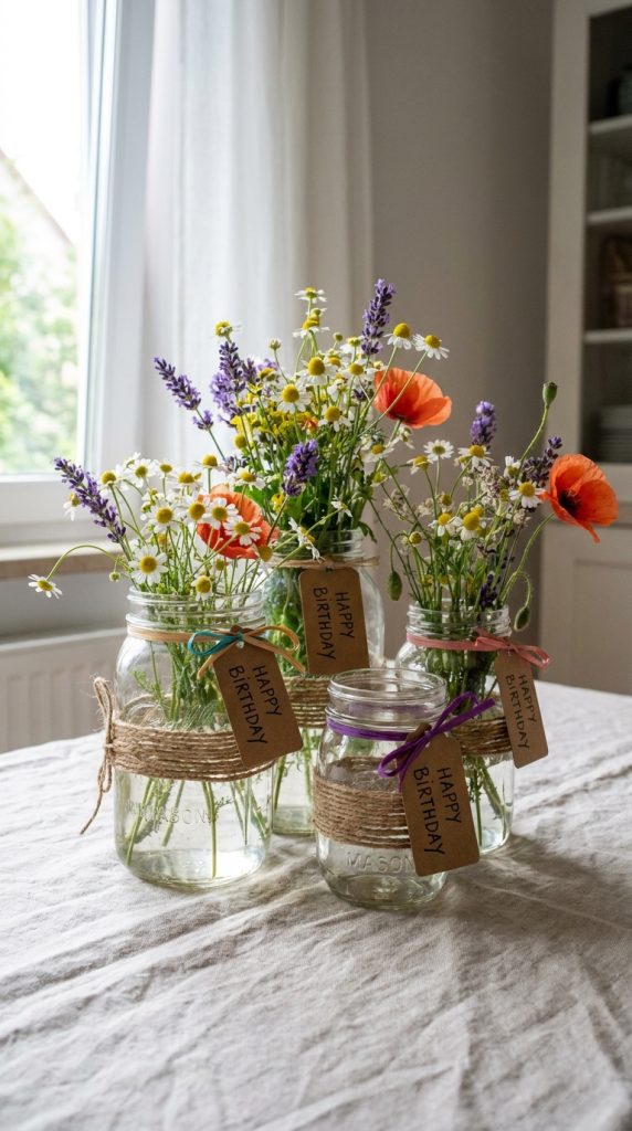 Floral tower centerpieces are one of my absolute favorite budget-friendly tricks for making a birthday table look genuinely impressive.