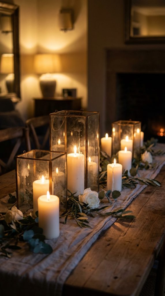 Think mason jars wrapped in twine for rustic charm, or simple greenery bundles paired with white candles for minimalist decor that looks intentionally refined.