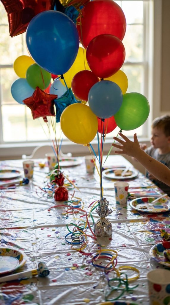 Helium magic keeps everything floating beautifully, giving tables that festive, eye-catching lift kids absolutely love. You’ll want to cluster five to seven balloons per arrangement for maximum visual impact. Anchor them with a weighted base so nothing floats away mid-party.
