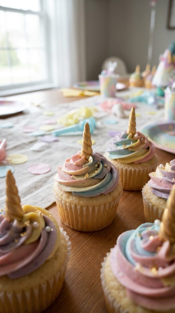 You’ll top each one with a swirled rainbow butter cream and a fondant magical horn that looks straight out of a storybook.