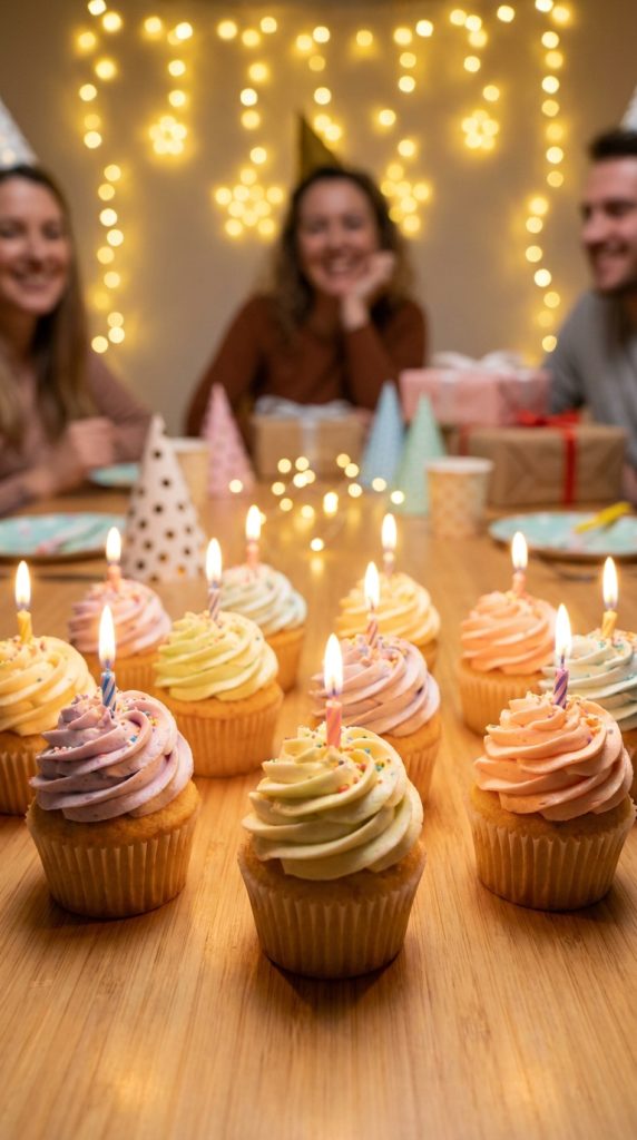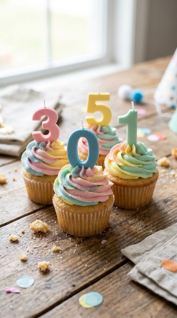 There’s something genuinely charming about a cupcake that looks exactly like a miniature birthday cake, complete with tiny candles poking out the top.