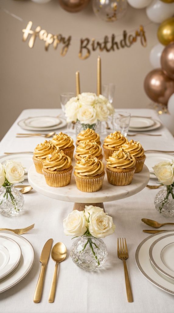 Glitter and Gold Cupcakes for the Most Glamorous Birthday Table