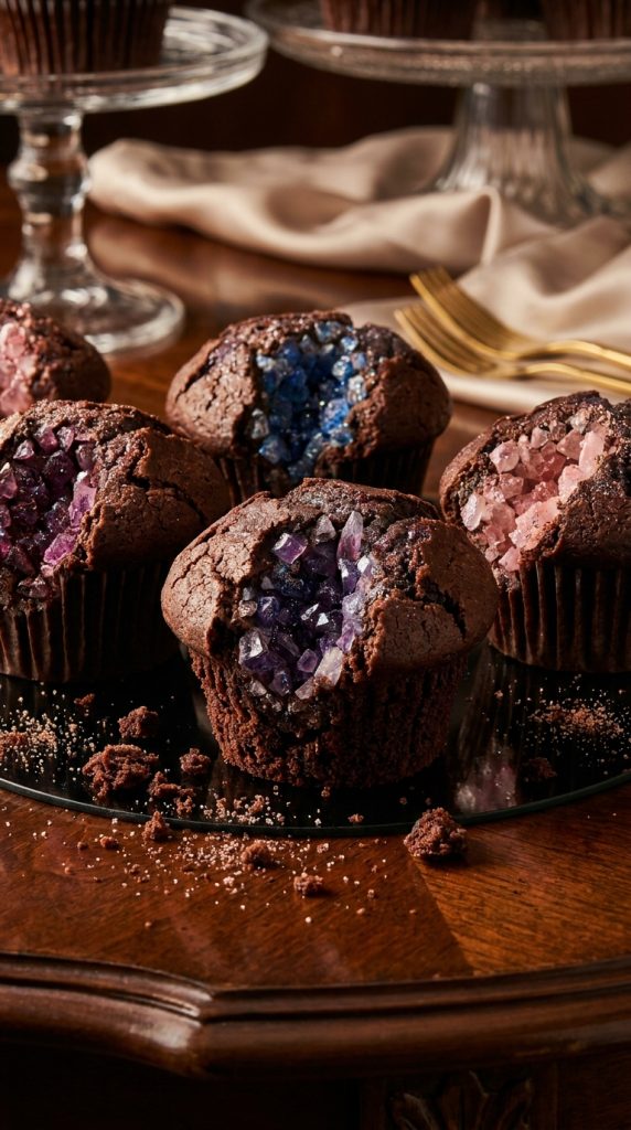 These cupcakes are genuinely show-stopping, and I mean that literally — guests will stop mid-conversation just to stare at them. You’ll create hollow chocolate shells filled with rock candy geode crystals that catch light beautifully.