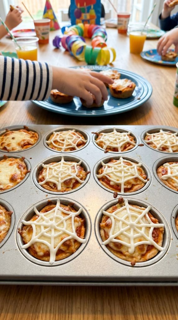 If you’re looking for something the kids will lose their minds over, Spider Web Pizza Bites are your answer. Press store-bought dough into a muffin tin, add sauce, and top with mozzarella for that irresistible cheese pull moment.