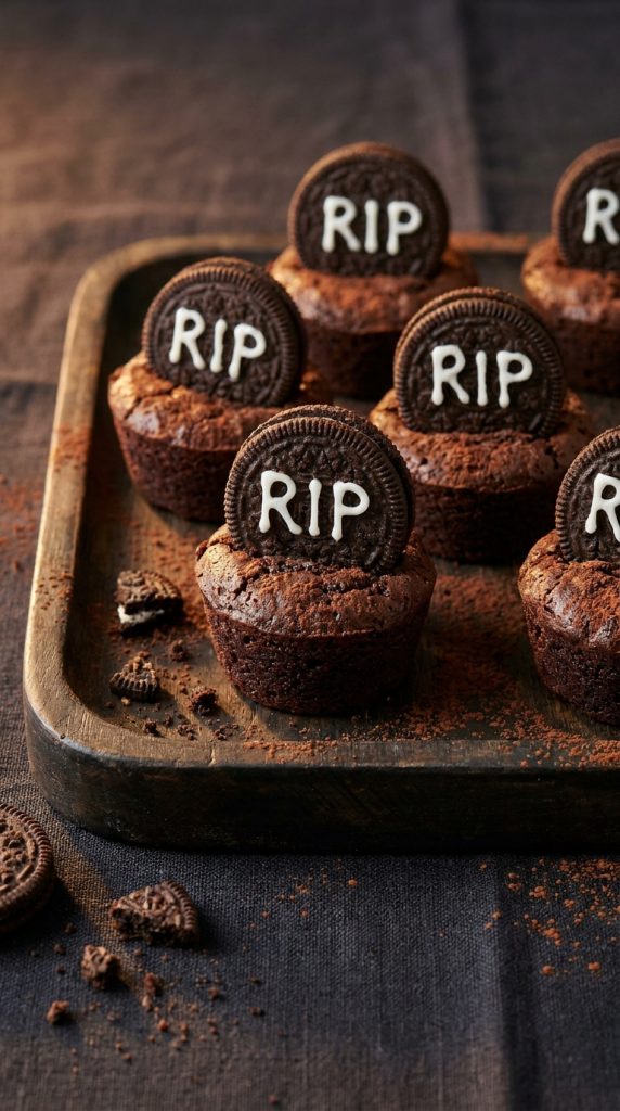 Graveyard Brownie Bites With Oreo Tombstones